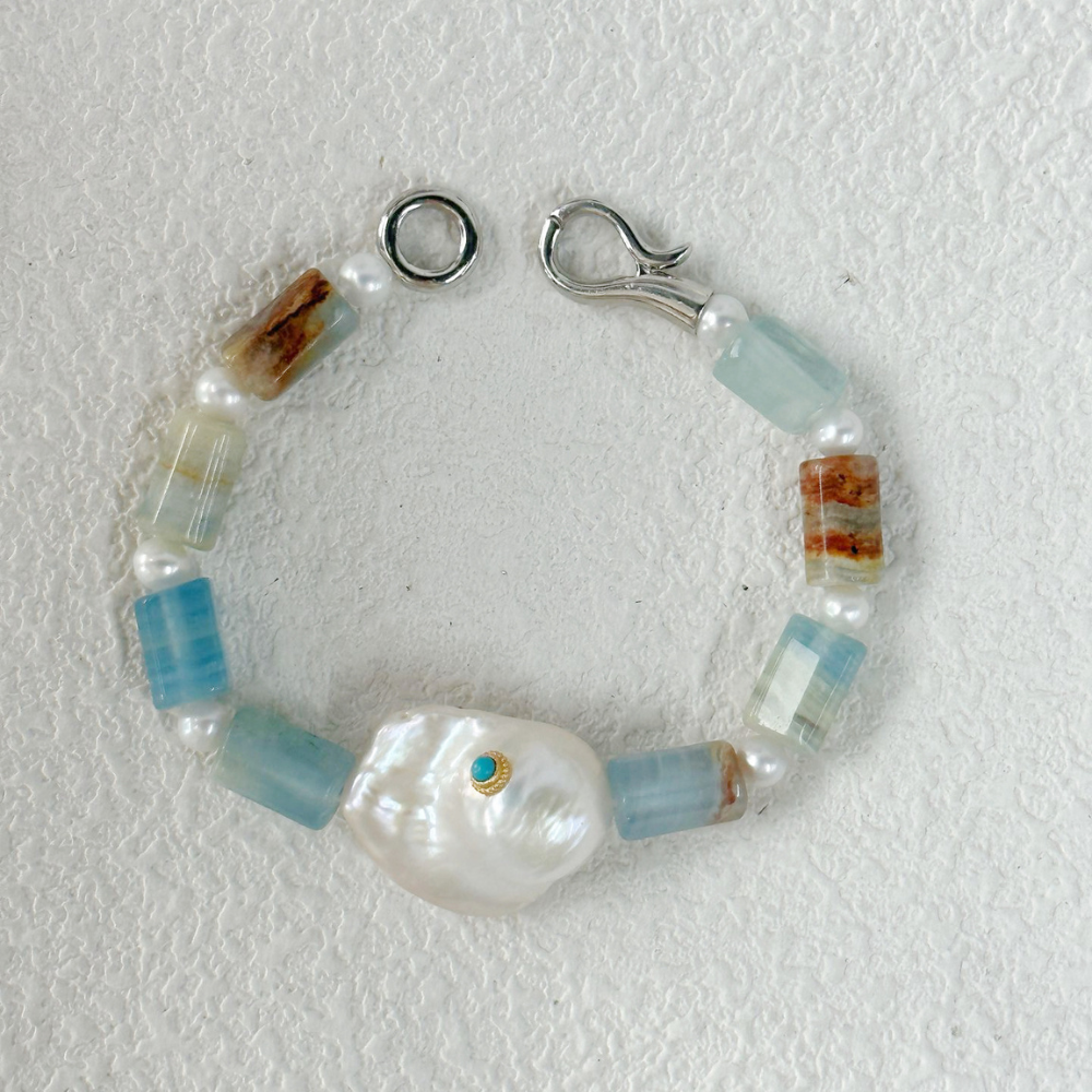 Blue Turquoise stone & Baroque Pearl Bracelet